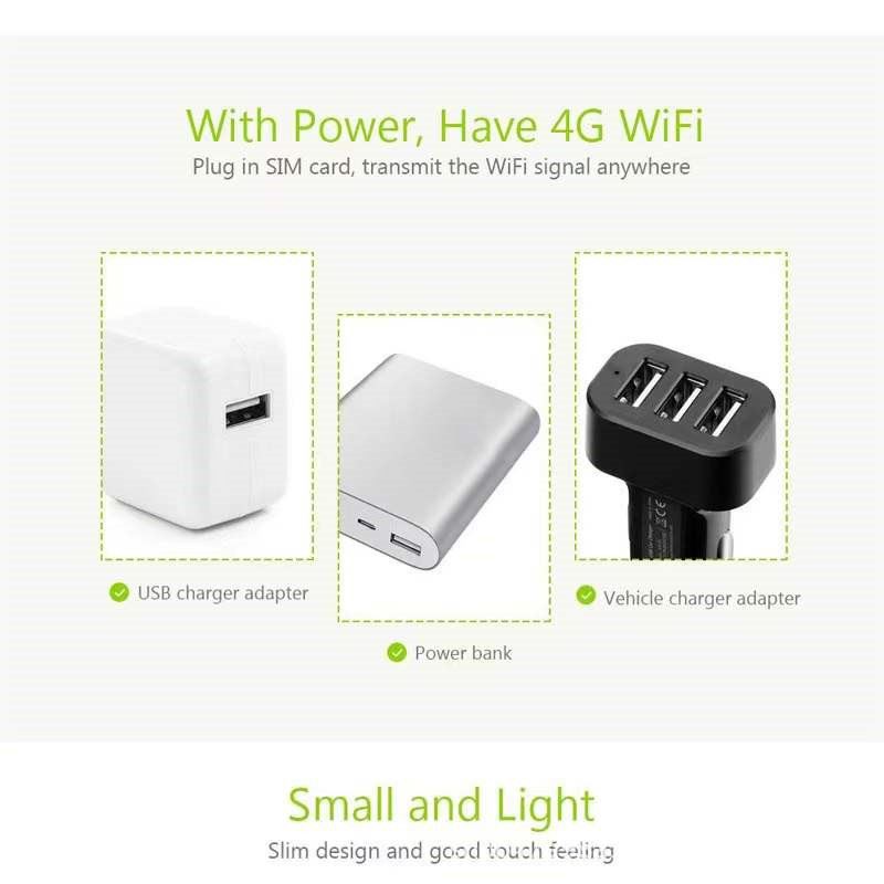 * Skupna raba internetne povezave, do 10 uporabnikov lahko dostopa do omrežja Wi-Fi hkrati. ni potrebe po namestitvi programske opreme (Način WiFi), delo z zunanjim napajanjem, brez omejenega delovnega časa.